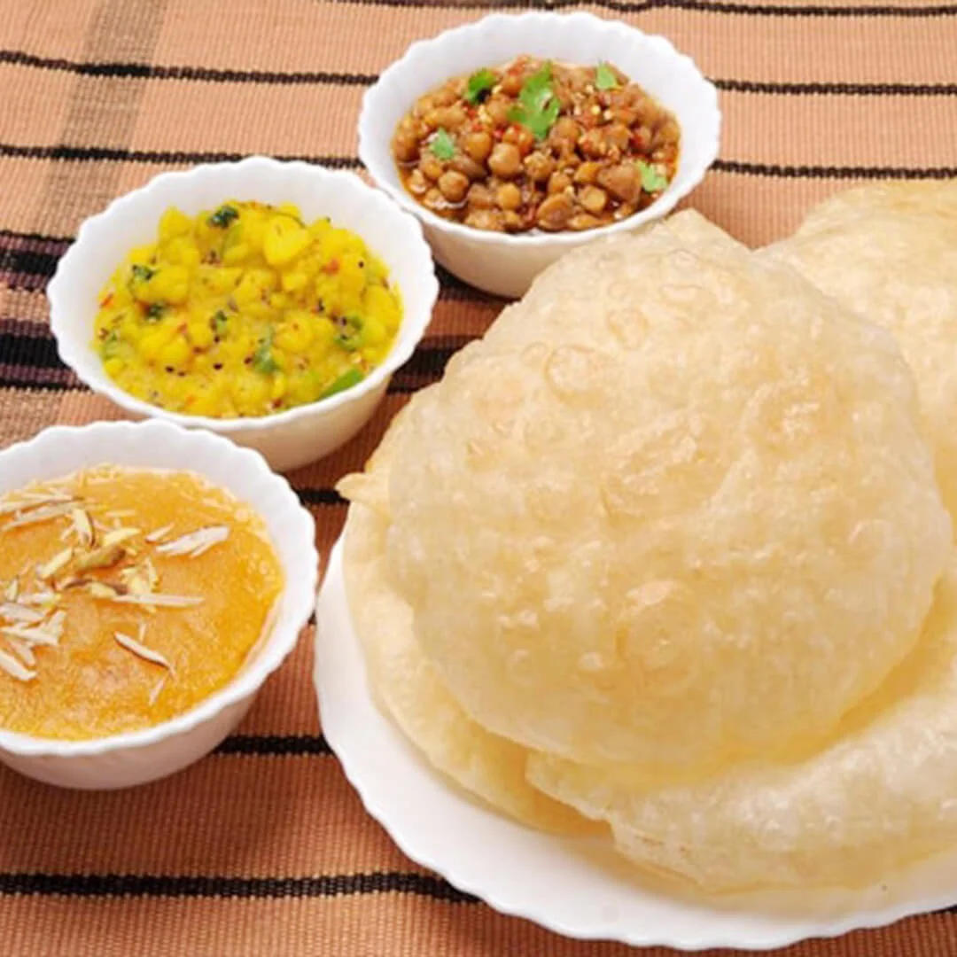 (2 Puris, Aloo Tarkari, Channay, Halwa)
